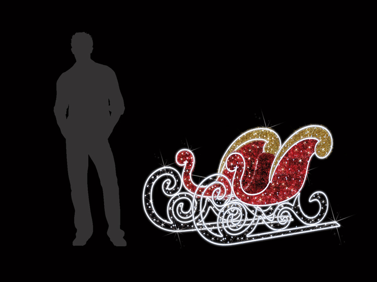 Magical Red & Gold LED Sleigh with Neon Skis — For Rent