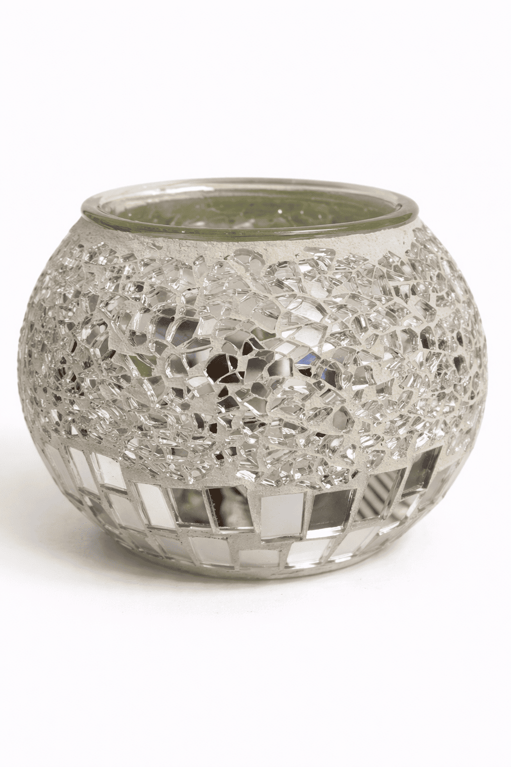 Add sparkle and elegant reflections to your event décor with these silver mirror mosaic table vases. Covered with small mirrored tiles, the vase reflects surrounding light and creates a beautiful shimmering effect, perfect for festive and glamorous settings.