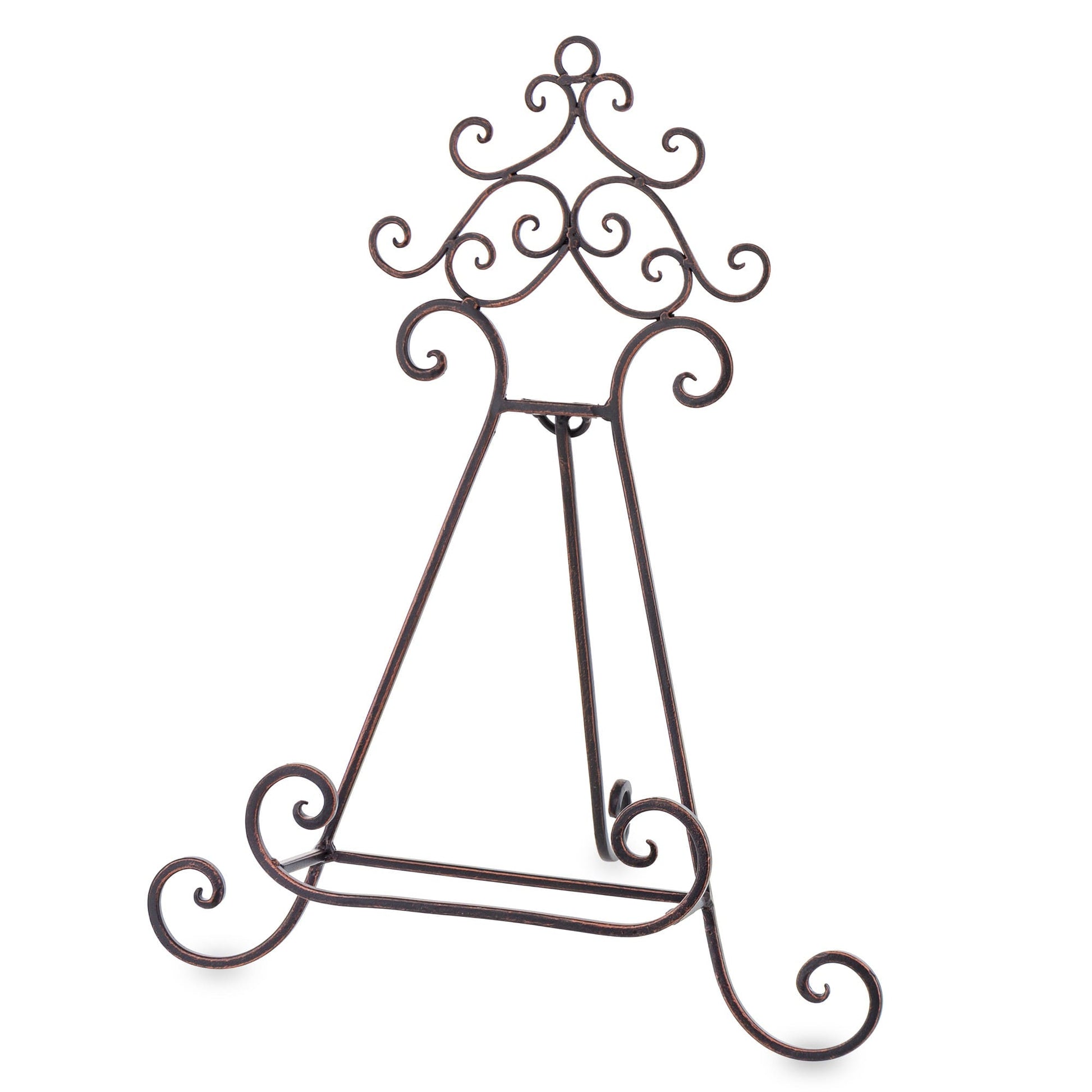 Decorative vintage metal menu holder stand available for rent from 7skyrent, designed for displaying menus, table numbers, welcome signs, photos or event information cards. The elegant scrollwork metal design adds a classic decorative accent to weddings, receptions, restaurants, candy bars and event tables.